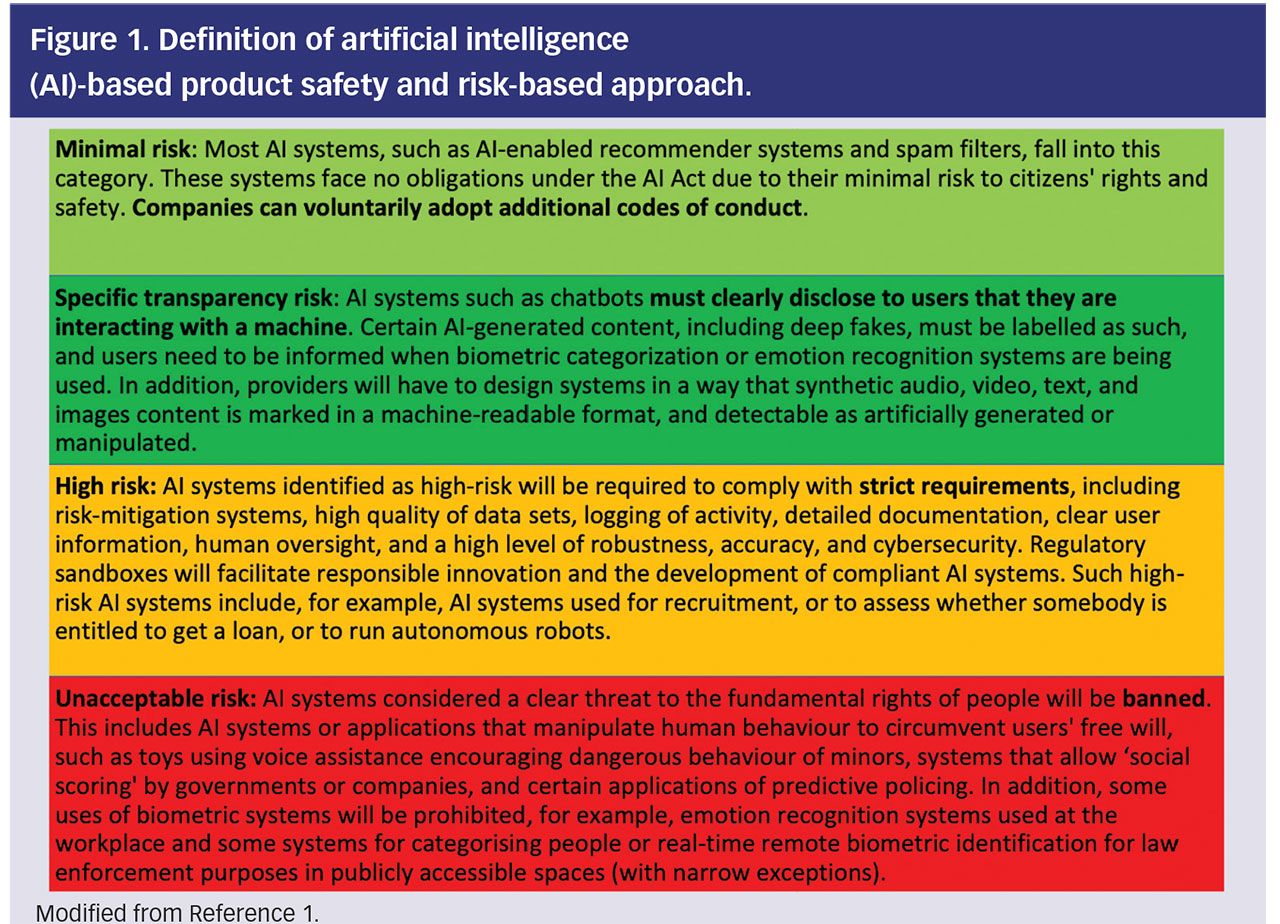 The European Federation of Pharmaceutical Industries and Associations (EFPIA) welcomes the AI Act and “believes in the potential of applying AI to deliver benefit for patients, life-science companies, and society” (7). However, it stresses that “the regulatory frameworks governing the use of AI in research, development, and manufacture must be fit-for-purpose, risk-based, non-duplicative, globally aligned, and adequately tailored” (7). When AI-enabled tools are used in pharma R&D, they are exempt from the requirements of the EU AI Act; however, developers and deployers of AI-enabled digital health tools (DHTs) and AI-enabled digital medicine would be impacted by the AI Act, but they would not be considered high risk (8).