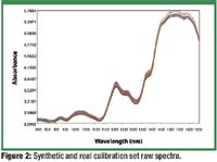 This article discusses a method of obtaining a prediction method that uses only placebo tablets and samples containing an active pharmaceutical ingredient (API) from the product line. The natural variation range in the product line is extended with synthetic samples created by adding varying amounts of the pure-active spectrum to the placebos. Purely synthetic spectra lack the scattering variance of real tablets and would not create a robust prediction model. The placebos, which are often available from clinical studies, provide the real scattering and spectral variance seen in a calibration set.