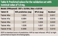 Table II: Predicted values for the validation set with nominal value of 1.0 mg.